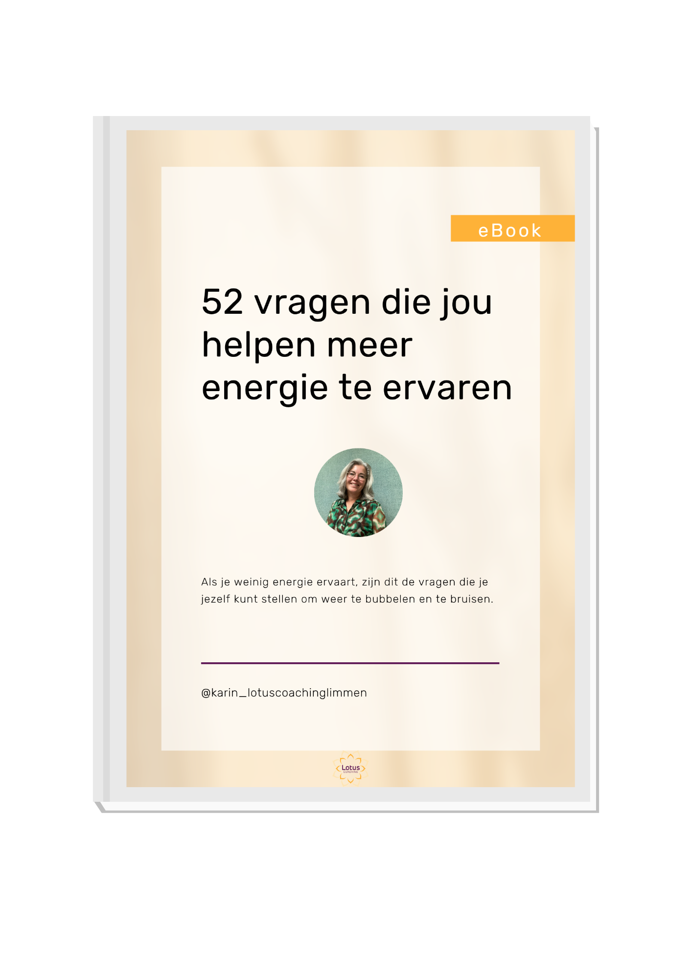 Een praktisch werkboek van Karin met twaalf thema’s, korte reflectievragen en toepasbare oefeningen. Speciaal voor mensen met burn-out- of stressklachten die stap voor stap hun energie willen herstellen. Vul je gegevens in en ontvang direct het eBook als PDF.